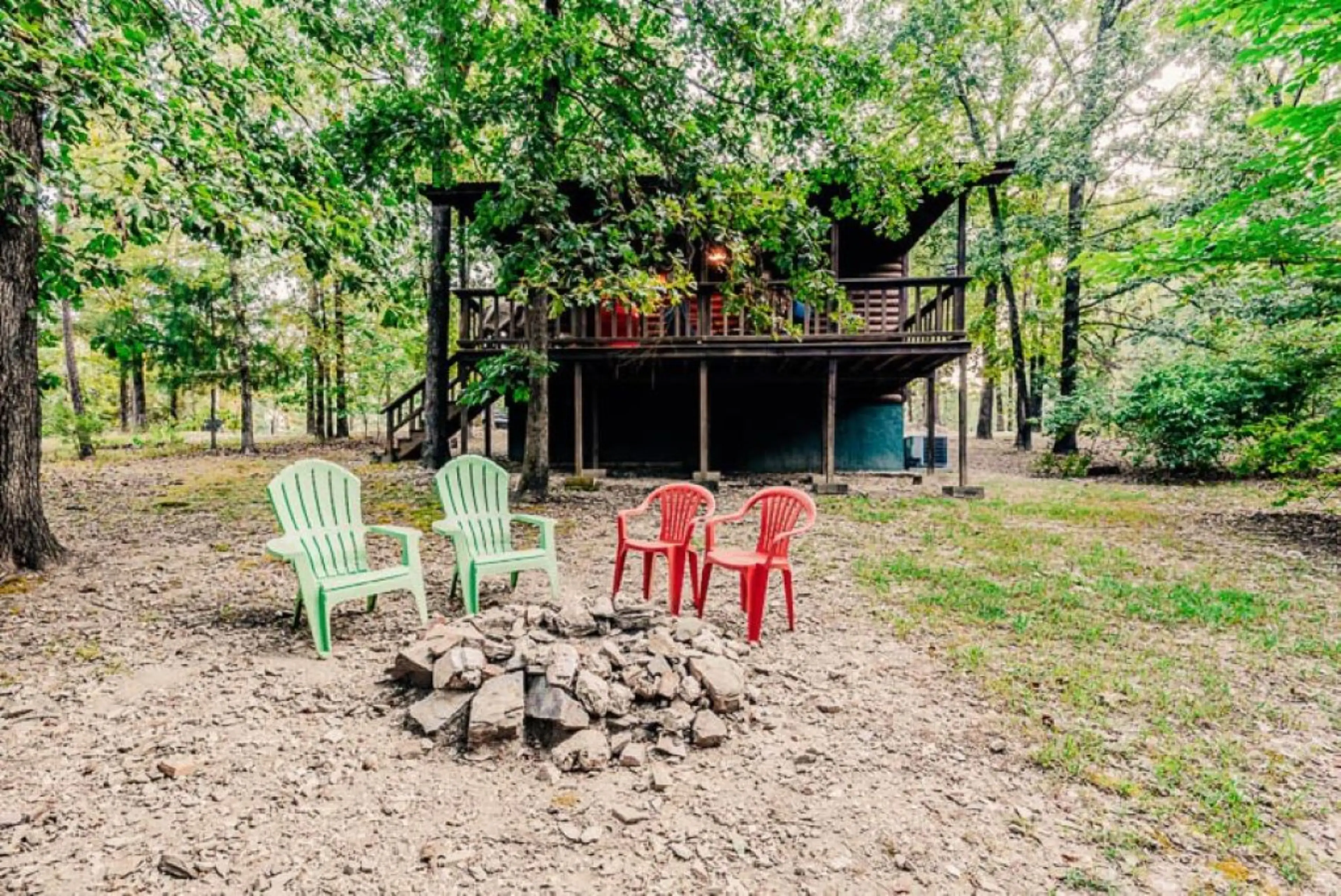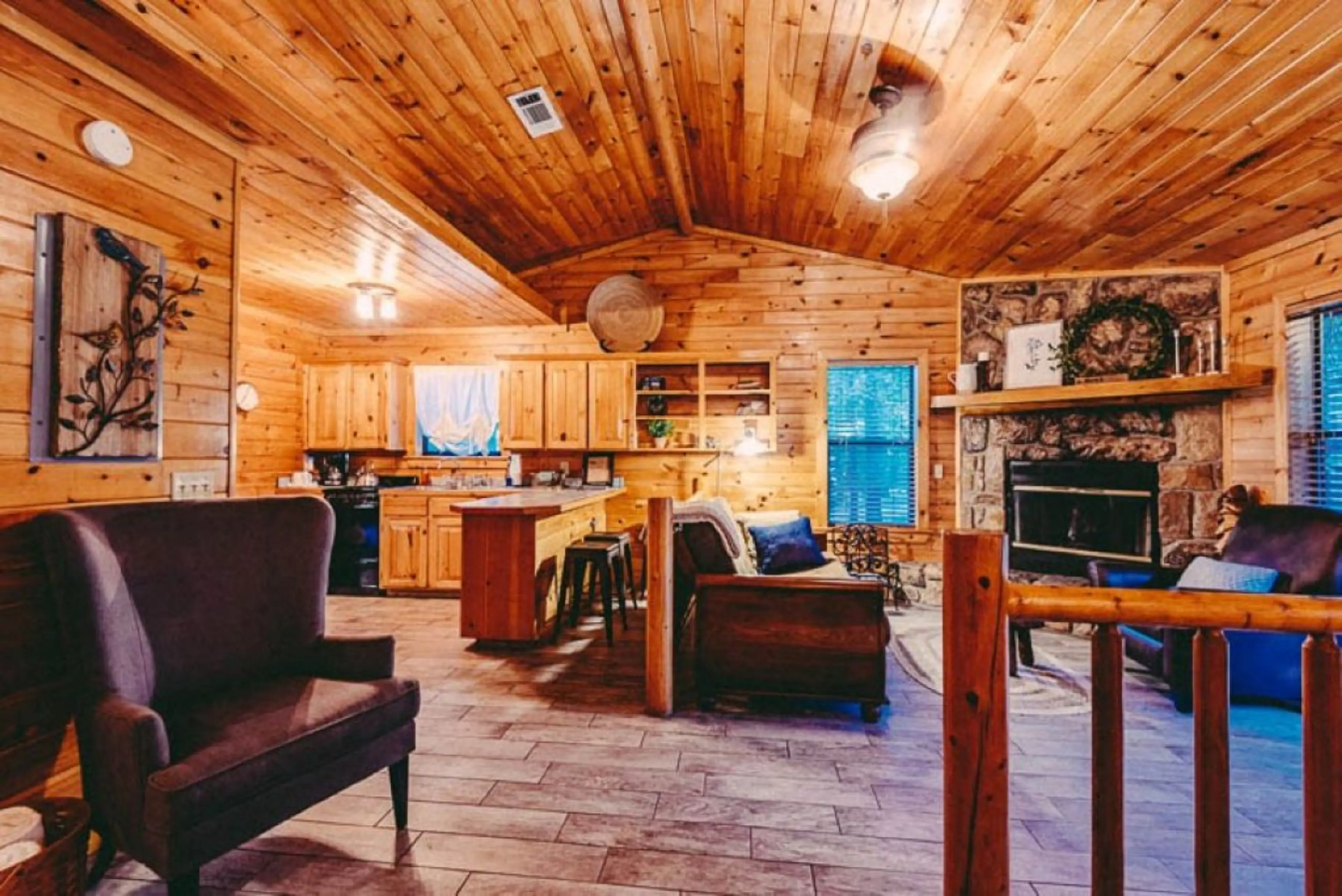 Cabin in Hochatown, Oklahoma, Sleeps 4, 1 Bedroom (studio), 1 Bathroom, Pet Friendly, Fireplace, Indoor Hot Tub, Outdoor Fire Pit, Corn Hole, EV Charger, Woodsy Views