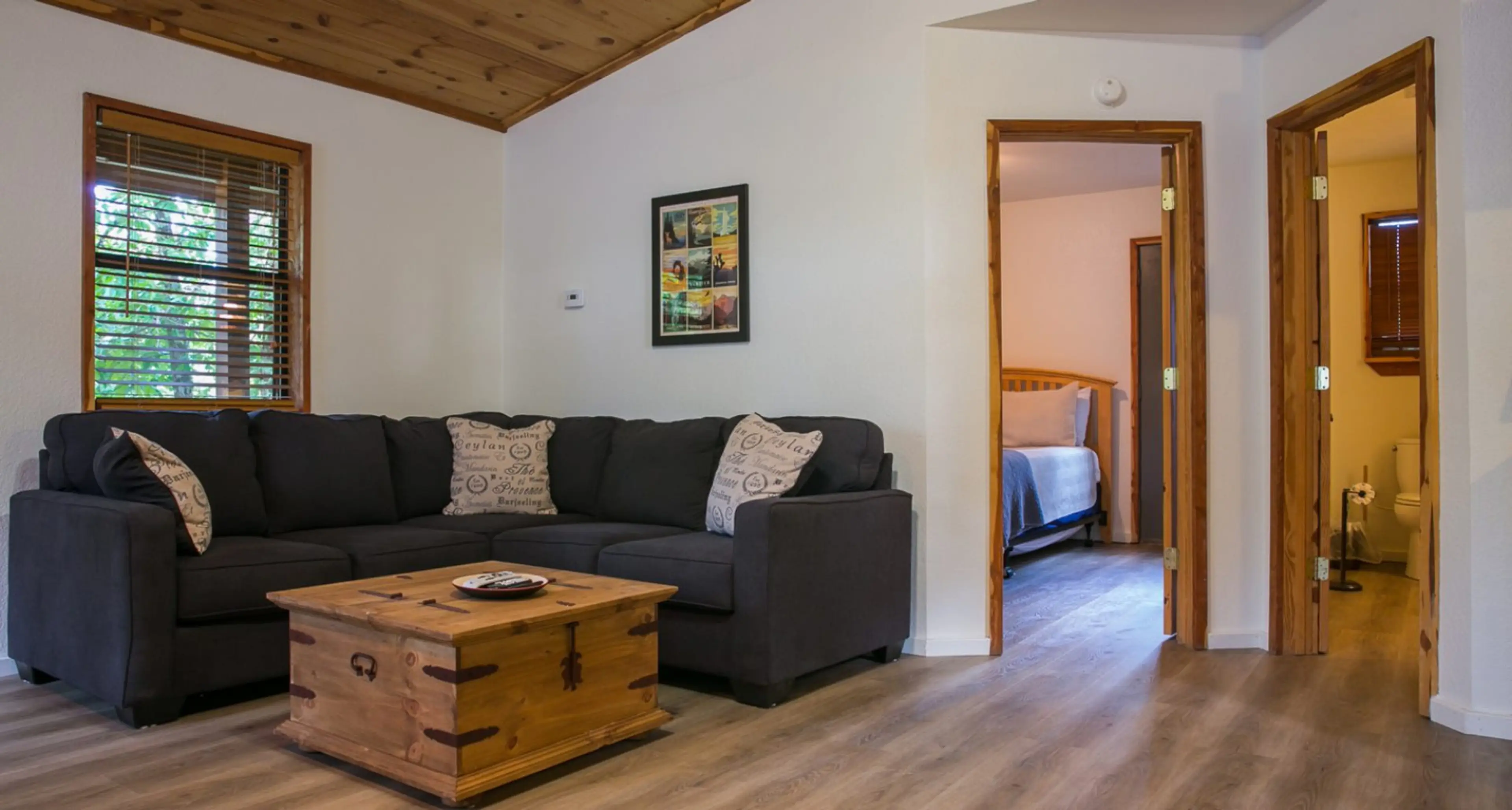 This cabin is set on a wonderful hilltop location away from the crowded neighborhoods, but still close to all the restaurants, breweries and fun that Hochatown has to offer. Just outside the door of the cabin is a marked hiking trail leading you through the Ouachita National Forest to a private cove...
